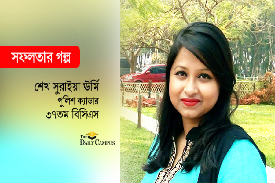 আহসানউল্লাহ বিজ্ঞান ও প্রযুক্তি বিশ্ববিদ্যালয় থেকে অনার্স এবং ঢাকা বিশ্ববিদ্যালয়ের ইভিনিং এমবিএর শিক্ষার্থী শেখ সুরাইয়া ঊর্মি ৩৭তম বিসিএস (পুলিশ) ক্যাডারে সুপারিশপ্রাপ্ত হয়েছেন। তার এই সাফল্যের গল্প লিখছেন মো. আমজাদ হোসেন ফাহীম