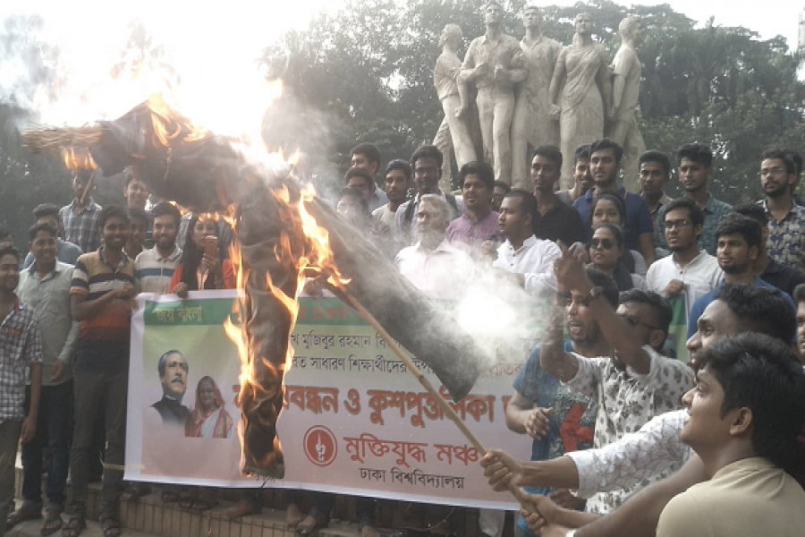 ঢাবিতে বশেমুরবিপ্রবি ভিসির কুশপুত্তলিকা দাহ মুক্তিযোদ্ধা মঞ্চের