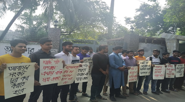 ঢাকা বিশ্ববিদ্যালয়ের (ঢাবি) বিভিন্ন আবাসিক হলের আবাসন সংকট সমাধানে দৃশ্যমান কোনো পদক্ষেপ না নেয়ায় ভিসি অধ্যাপক ড. মো. আখতারুজ্জামানের বাসভবনের সামনে অবস্থান নিয়েছে গণরুমের শিক্ষার্থীরা। ডাকসু সদস্য তানভীর হাসান সৈকতের নেতৃত্বে আজ মঙ্গলবার সকাল ১০ টার দিকে ভিসির বাসভবনে থাকার উদ্দেশ্যে সেখানে যান শিক্ষার্থীরা।