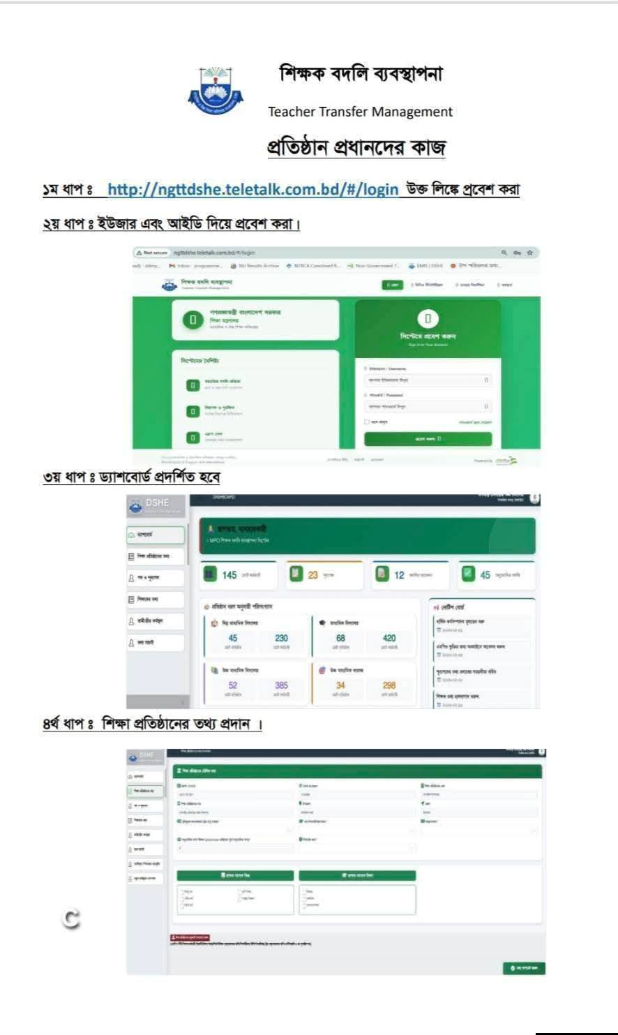 সভায় প্রদর্শিত হওয়া বদলি সফটওয়্যারে প্রতিষ্ঠানপ্রধানদের জন্য চারটি ধাপ রাখা হয়েছে। প্রথম ধাপে সফটওয়্যারের লিংকে প্রবেশ করার কথা উল্লেখ করা হয়েছে। দ্বিতীয় ধাপে সংশ্লিষ্ট প্রধানকে দেওয়া ইউজার আইডি এবং পাসওয়ার্ড ব্যবহার করে সফটওয়্যারে লগ-ইন করতে হবে।