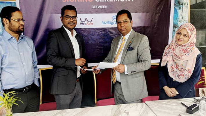 স্থানীয় ও বিদেশি বিভিন্ন প্রতিষ্ঠানের সফটওয়্যার ডেভেলপমেন্ট, ওয়েবসাইট ডেভেলপমেন্ট, ডিজিটাল মার্কেটিং এবং অ্যাপস ডেভেলপমেন্ট ইত্যাদি সহায়তা দিতে দেশের দুটি প্রতিষ্ঠান ফাজিলা গ্রুপ ও ওয়েবএবল বাংলাদেশের মধ্যে একটি সমঝোতা স্মারক স্বাক্ষরিত হয়েছে। সম্প্রতি স্থানীয় এক হোটেলে এ সমঝোতা স্বারকটি স্বাক্ষরিত হয়। স্বাক্ষরিত স্মারক অনুযায়ী এ দুটি প্রতিষ্ঠান তথ্যপ্রযুক্তি বিষয়ক বিভিন্ন প্রশিক্ষণ কর্মসূচি ও শিক্ষা কার্যক্রমের আয়োজন করবে।