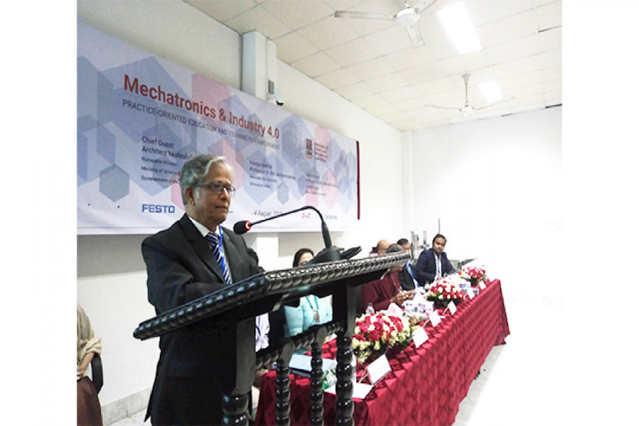 ঢাকা বিশ্ববিদ্যালয়ের রোবটিক্স অ্যান্ড মেকাট্রনিক্স ইঞ্জিনিয়ারিং বিভাগের উদ্যোগে আয়োজিত হচ্ছে ‘চাকরির জন্য অনুশীলন কেন্দ্রিক শিক্ষা ও প্রশিক্ষণ’ বিষয়ক দিনব্যাপী সেমিনার। সেখানে উদ্বোধনী বক্তব্যে উপস্থিত শিক্ষার্থী ও ডেলিগেটদের উদ্দেশ্য এই আহ্বান জানান তিনি।