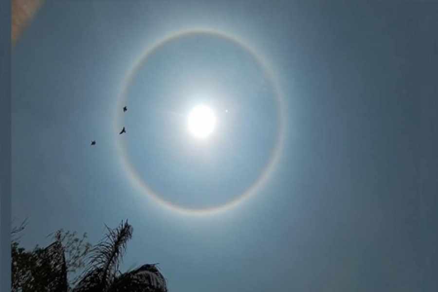 সূর্যের চারপাশে গোলাকার বলয়ের এক বিস্ময়কর ও বিরল দৃশ্য দেখা গেছে আকাশে। সূর্যের চারপাশের গোলাকার এই চিহ্ন নিয়ে সবার মনে প্রশ্ন জেগেছে। বাংলাদেশের সকাল ১১টার পর থেকে এমন গোলাকার চিহ্ন দেখা গেছে।