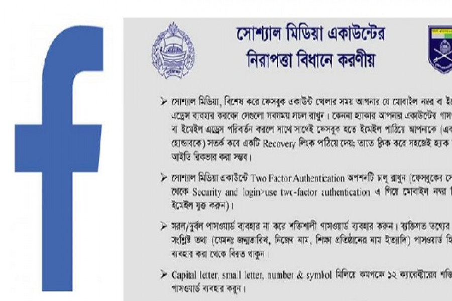 সামাজিক যোগাযোগমাধ্যম ফেসবুক হ্যাক হলে কী করবেন- এমন প্রশ্ন অনেকে। বিষয়ট নিয়ে দিশা দিয়েছে বাংলাদেশ পুলিশ। শুক্রবার অফিসিয়াল পেজে ‘সোশ্যাল মিডিয়া একাউন্ট হ্যাক হলে করোণীয়’ শিরোনামে পরামর্শ দিয়েছে তারা। সেখানে বলা হয়েছে-