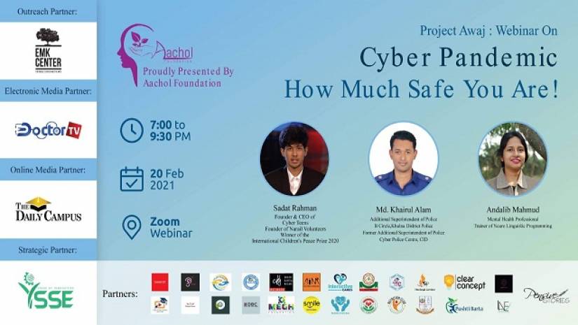 এই প্রজেক্টের অংশ হিসেবে আগামীকাল শনিবার (২০ ফেব্রুয়ারি) আঁচল ফাউন্ডেশন “Cyber Pandemic: How much safe you are!” শীর্ষক একটি ওয়েবিনার আয়োজন করতে যাচ্ছে। আর এতে অনলাইন মিডিয়া পার্টনার হিসেবে থাকছে দ্যা ডেইলি ক্যাম্পাস।