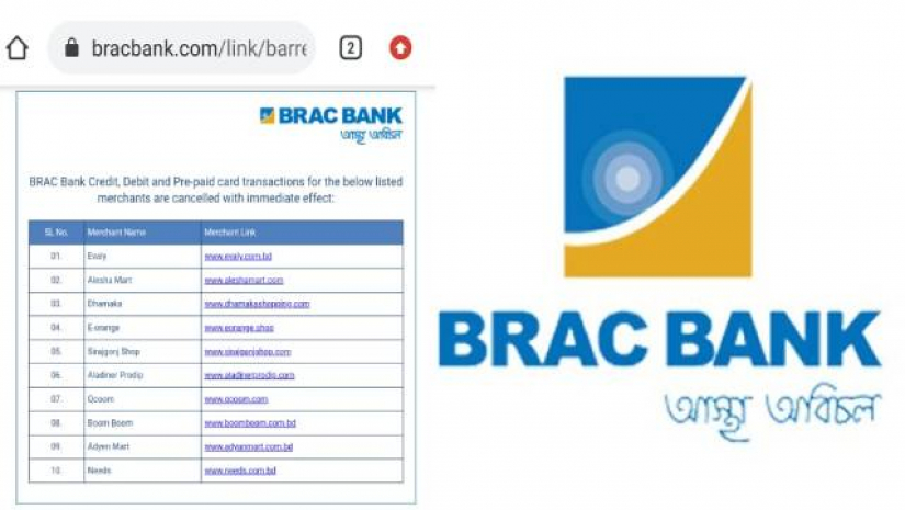 ইভ্যালিসহ ১০ ই-কমার্সে কেনাকাটায় ব্র্যাক ব্যাংকের নিষেধাজ্ঞা