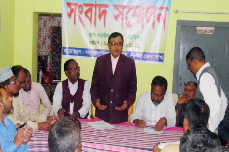 শুক্রবার (২২ নভেম্বর) সকাল সাড়ে ১০টায় নড়াইল প্রেসক্লাবের সামনে জেলা মাধ্যমিক শিক্ষক সমিতির আয়োজনে একটি কর্মসূচিতে এ কথা বলেন সাধারণ সম্পাদক ধ্রুব কুমার ভদ্র।