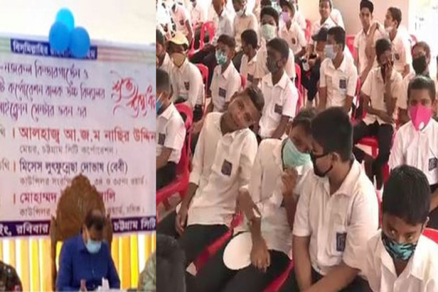 করোনা মহামারীর মধ্যে দেশের সব শিক্ষাপ্রতিষ্ঠান বন্ধ থাকলেও চট্টগ্রাম মহানগরীর পাথরঘাটার একটি বিদ্যালয়ের নতুন ভবনের উদ্বোধনী অনুষ্ঠান হয়েছে শিক্ষার্থীদের উপস্থিতিতে। আজ রবিবার পাথরঘাটা সিটি করপোরশেন বালক উচ্চ বিদ্যালয় এবং রবীন্দ্র-নজরুল কিন্ডারগার্টেন স্কুল কাম সাইক্লোন সেন্টারে এই অনুষ্ঠানে সামাজিক দূরত্বের নিয়ম ও স্বাস্থ্যবিধিও মানতে দেখা যায়নি।
