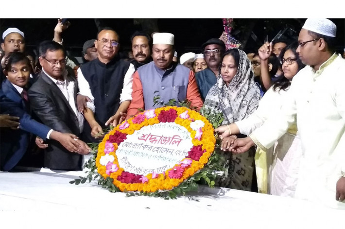 এর আগে তিনি সন্ধ্যায় টুঙ্গিপাড়ায় পৌঁছে বঙ্গবন্ধু শেখ মুজিবুর রহমানের সমাধি সৌধের বেদীতে পুস্পমাল্য অর্পণ করে শ্রদ্ধা নিবেদন করেন। পরে বঙ্গবন্ধু ও তাঁর পরিবারের নিহত সদস্যদের রুহের মাগফেরাত কামনা করে ফাতেহা পাঠ ও বিশেষ মোনাজাতে অংশ নেন। এসময় কুড়িগ্রাম জেলা আওয়ামী লীগের সভাপতি মঞ্জুরুল ইসলাম মঞ্জু, রৌমারি উপজেলা আওয়ামী লীগের সাধারণ সম্পাদক জাহিদুল ইসলাম মিনু, কুড়িগ্রাম মহিলা আওয়ামী লীগের সভাপতি সুরাইয়া জাকির ও গোপালগঞ্জ জেলা প্রাথমিক শিক্ষা অফিসার আনন্দ কিশোর সাহা উপস্থিত ছিলেন।