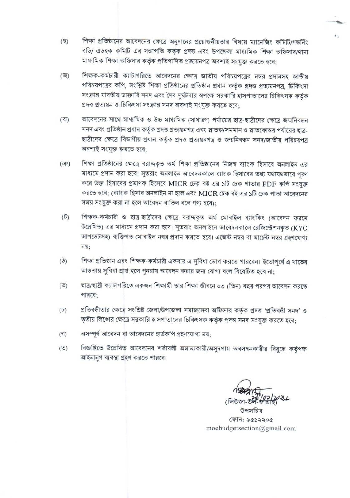 * শিক্ষাপ্রতিষ্ঠান ও শিক্ষক-কর্মচারী একবারই সুবিধা ভোগ করতে পারবেন; পূর্বে সুবিধা পাওয়া ব্যক্তিদের পুনরায় আবেদন করার সুযোগ নেই।