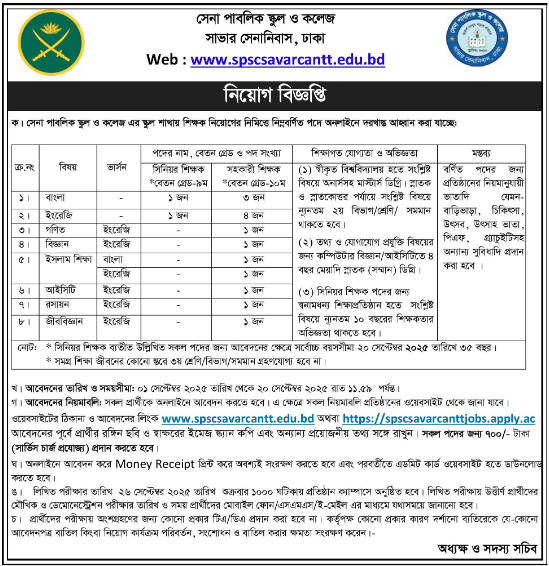 শিক্ষক নিয়োগ দেবে সেনা পাবলিক স্কুল ও কলেজ, পদ ১৬, কর্মস্থল ঢাকার সাভার