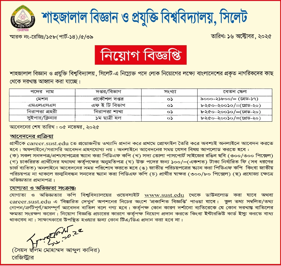 আবেদনের শেষ সময়: আগামী ৫ নভেম্বর ২০২৫;
