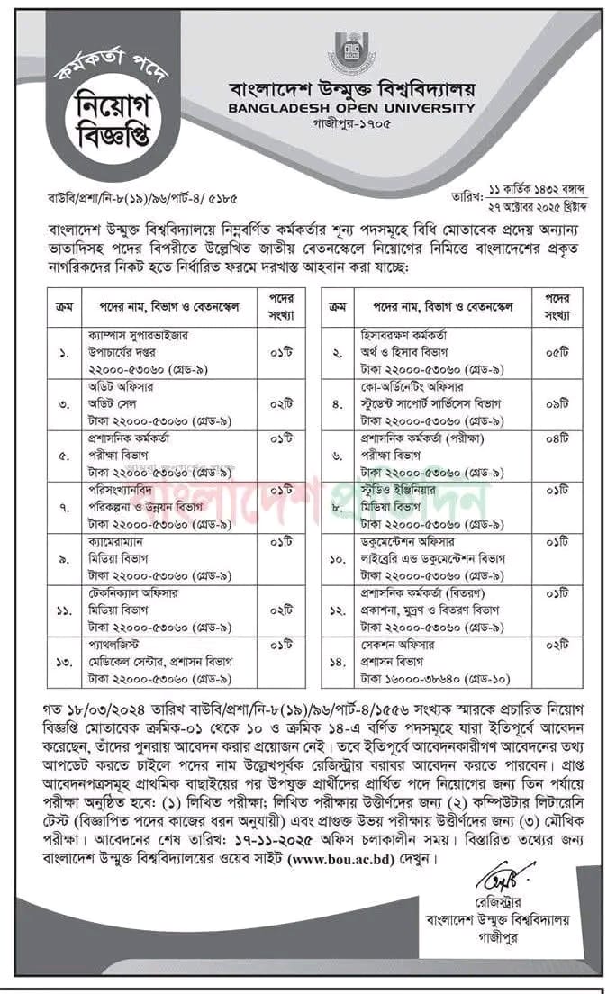 নবম গ্রেডে ৩২ জনকে নিয়োগ নেবে উন্মুক্ত বিশ্ববিদ্যালয়