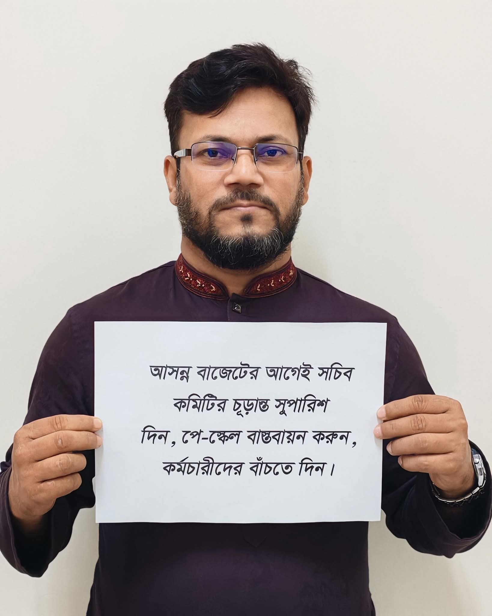 বিজ্ঞপ্তিতে বলা হয়, বাংলাদেশ সরকারী কর্মকর্তা-কর্মচারীরা রাষ্ট্র পরিচালনায় প্রতিটি সেক্টরে নিষ্ঠা, সততা, ও দ্বায়িত্বশীলতার সাথে কাজ করে দেশের উন্নয়ন অগ্রযাত্রাকে এগিয়ে নিয়ে যাচ্ছেন। প্রশাসন, শিক্ষা, স্বাস্থ্য, আইন শৃঙ্খলা, অবকাঠামো উন্নয়ন সহ সকল সেবামূলক কার্যক্রমে সরকারী কর্মকর্তা-কর্মচারীরা নিরলস ভাবে কাজ করে যাচ্ছেন। কিন্তু অত্যন্ত দুঃখের সাথে বলতে হচ্ছে ২০১৫ সালে ৮ম পে-স্কেল হবার পর প্রায় ১১ বছর অতিবাহিত হলেও এখন পর্যন্ত ৯ম পে-স্কেল বাস্তবায়ন হয়নি। এই দীর্ঘ সময়ে দেশের অর্থনৈতিক বাস্তবতা, দ্রব্যমূল্যের উর্ধগতি এবং জীবন যাপনের ব্যয় ব্যাপকভাবে বৃদ্ধি পেয়েছে। ফলে সরকারী নিম্ন গ্রেডভুক্ত কর্মচারীরা ২০১৫ সালের বেতন দিয়ে জীবন যাপন করতে গিয়ে চরমভাবে আর্থিক সংকটে পড়েছে।