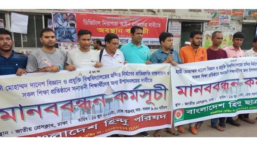 সারাদেশে স্কুল, কলেজ, বিশ্ববিদ্যালয়ে অন্যান্য ধর্মাবলম্বীদের প্রার্থনাস্থল থাকলে হিন্দু শিক্ষার্থীদের জন্য প্রার্থনাস্থল বা মন্দির ব্যবস্থা না থাকায় হিন্দু শিক্ষার্থীরা যথাযথ ধর্মীয় জ্ঞান থেকে বঞ্চিত হচ্ছে দাবি করে প্রতিটি স্কুল, কলেজ ও বিশ্ববিদ্যালয়ে মন্দির নির্মাণের দাবি জানিয়েছে বাংলাদেশ হিন্দু পরিষদ।