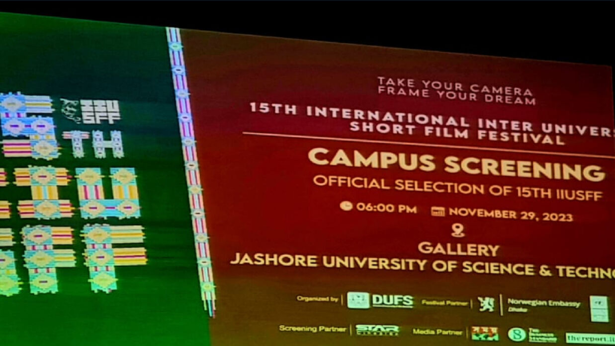 যশোর বিজ্ঞান ও প্রযুক্তি বিশ্ববিদ্যালয়ে ১৫তম আন্তর্জাতিক আন্তঃবিশ্ববিদ্যালয় স্বল্পদৈর্ঘ্য চলচ্চিত্র উৎসব (IIUSFF) এর অষ্টম ক্যাম্পাস স্ক্রিনিং অনুষ্ঠিত হয়েছে। ২৯ নভেম্বর (বুধবার) ঢাকা বিশ্ববিদ্যালয় চলচ্চিত্র সংসদ-এর উদ্যোগে এ উৎসবের আয়োজন করা হয়।