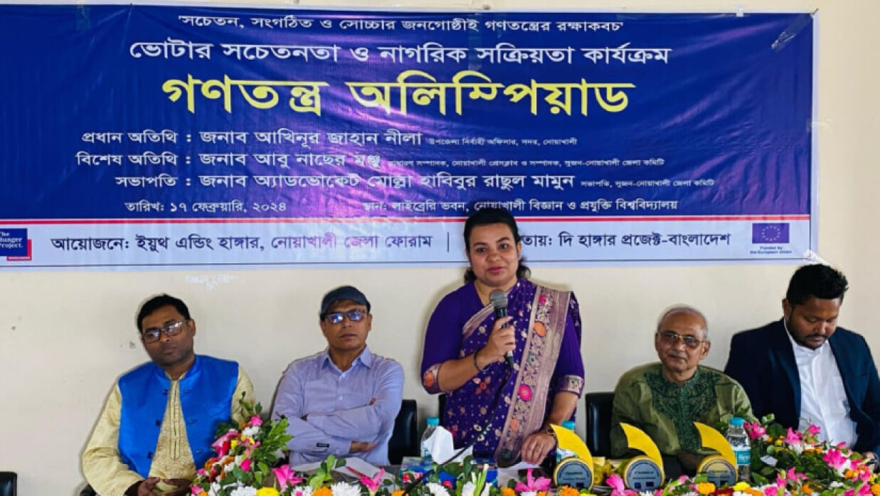 ‘সচেতন, সংগঠিত ও সোচ্চার জনগোষ্ঠীই গণতন্ত্রের রক্ষাকবচ’ এই শ্লোগানে নোয়াখালী বিজ্ঞান ও প্রযুক্তি বিশ্ববিদ্যালয়ে শিক্ষার্থীদের অংশগ্রহণে গণতন্ত্র অলিম্পিয়াড অনুষ্ঠিত হয়েছে।