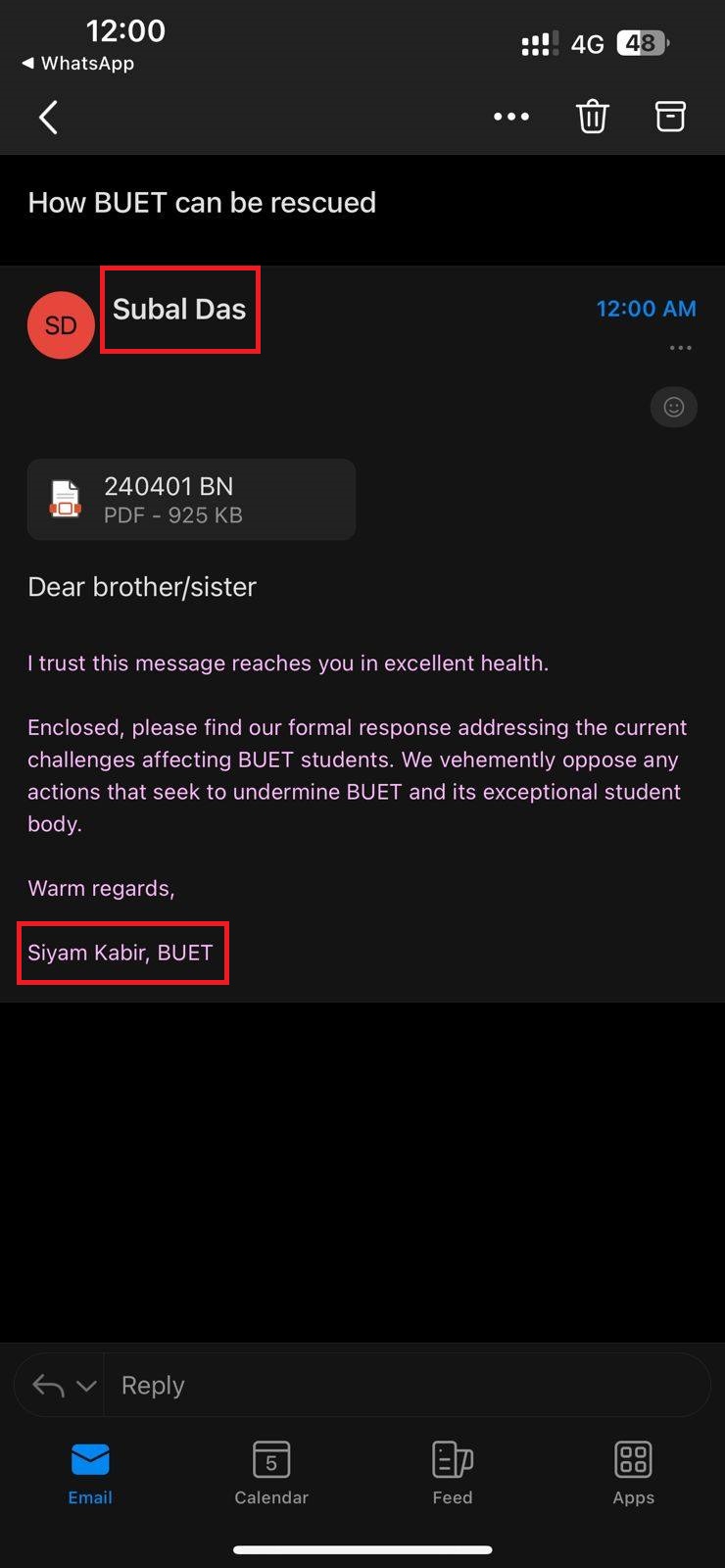 বুয়েটে শিক্ষার্থীদের রাজনীতিবিরোধী আন্দোলনের মাঝে গত ০৫ এপ্রিল রাতে বিভিন্ন নামে-বেনামে এসব বার্তা শিক্ষক-শিক্ষার্থীদের ইমেইলে পাঠানো হয়। সুবল দাস (subaldas9897@gmail.com) নামে ইমেইল আইডি থেকে বুয়েটের সব বর্ষের অনেক শিক্ষার্থীর ইনস্টিটিউশনাল ইমেইলে নিষিদ্ধ সংগঠন হিযবুত তাহরীরের নামে একটি প্রেস বিজ্ঞপ্তি পাঠানো হয়।