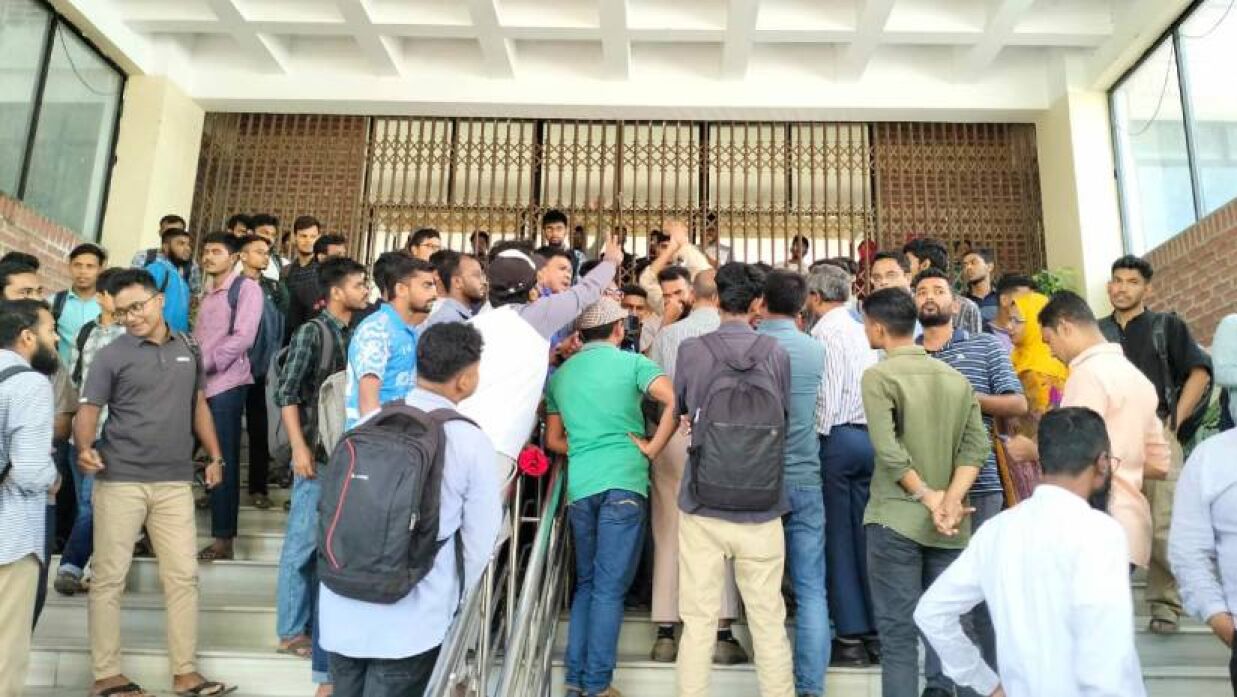 এই ঘটনার ১৬ দিন পর আজকে ক্যাম্পাসে বিক্ষোভ সমাবেশে উপস্থিত শিক্ষার্থীরা বলেন, গত ২৬ অক্টোবর আমাদের বিশ্ববিদ্যালয়ের ভেটেরিনারি এন্ড অ্যানিমেল সায়েন্সের ১৭ ব্যাচের শামীম রেজার রুমে ঢুকে তার উপর একই হলের ২০ থেকে ৩০ জন অতর্কিত হামলা চালায়। এ বিষয়ে আমরা প্রশাসনকে অবহিত করেছি। শুধু তাই নয় ভুক্তভোগী ওই শিক্ষার্থী লিখিত অভিযোগ জানালেও প্রায় ১৬ দিন পেরিয়ে গেছে। তারপরও বিশ্ববিদ্যালয় প্রশাসন হামলাকারীদের বিরুদ্ধে কোনো সুস্পষ্ট ব্যবস্থা গ্রহণ করেনি। তাই বাধ্য হয়ে আমরা বিশ্ববিদ্যালয়ের প্রশাসনিক ভবনে তালা দিয়েছি।