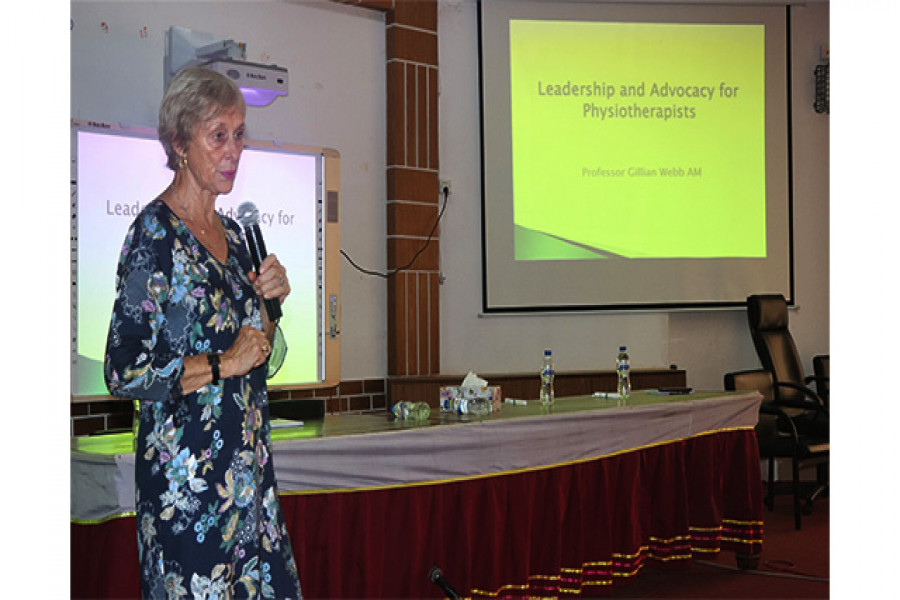 কর্মশালায় ফিজিওথেরাপিস্টদের জন্য ‘লিডারশীপ ও অ্যাডভোকেসি’ বিষয়ে মূল প্রবন্ধ উপস্থাপন করেন অস্ট্রেলিয়ার মেলবোর্ন বিশ্ববিদ্যালয়ের সহযোগী অধ্যাপক ডা. জিলিয়ান ওয়েব এএম। তিনি ফিজিওথেরাপিস্টদের দক্ষতার উন্নয়নের জন্য তাঁর চিকিৎসা জীবনের নানা অভিজ্ঞতার কথা বিনিময় করেন। একইসঙ্গে একজন দক্ষ ফিজিওথেরাপিস্টদের কোন কোন বিষয়ের উপর সর্বোচ্চ গুরুত্বারোপ করতে হয়, সেসব বিষয়ে তাঁর গবেষণাধর্মী বিভিন্ন তথ্য-উপাত্ত তুলে ধরেন।