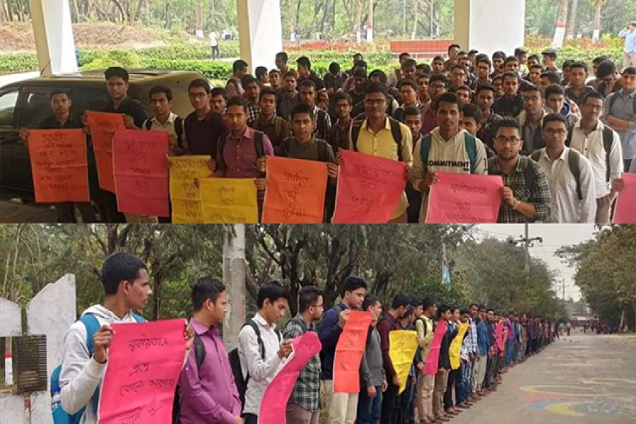 বিশ্ববিদ্যালয় পর্যায়ে সমন্বিত ভর্তি পরীক্ষার বিষয়ে আপত্তি জানিয়েছে চট্টগ্রাম প্রকৌশল ও প্রযুক্তি বিশ্ববিদ্যালয়ের (চুয়েট) শিক্ষার্থীরা। মঙ্গলবার বিশ্ববিদ্যালয়ের স্বাধীনতা চত্বরে মানববন্ধন করে শিক্ষার্থীরা। প্রায় ৩০০ শিক্ষার্থী অংশগ্রহণ করে মানববন্ধনে। পরে উপাচার্য অধ্যাপক ড. রফিকুল আলম বরাবর স্মারকলিপি দেয় তারা।