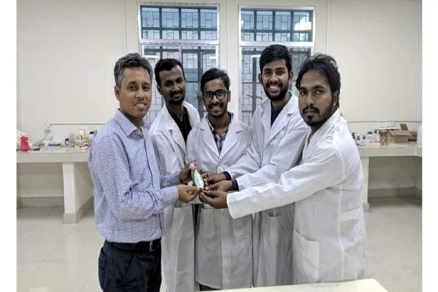 বিভাগের নিজস্ব ল্যাবে তৈরিকৃত এ হ্যান্ড স্যানিটাইজার বিভাগীয় প্রধান অধ্যাপক ড. ফরহাদ হোসেনের কাছে হস্তান্তর করেছে শিক্ষার্থীরা। এ সময় আরও উপস্থিত ছিলেন, বিভাগের সহকারী অধ্যাপক মুস্তাফিজুর রহমান ও প্রভাষক নুসরাত জাহান।