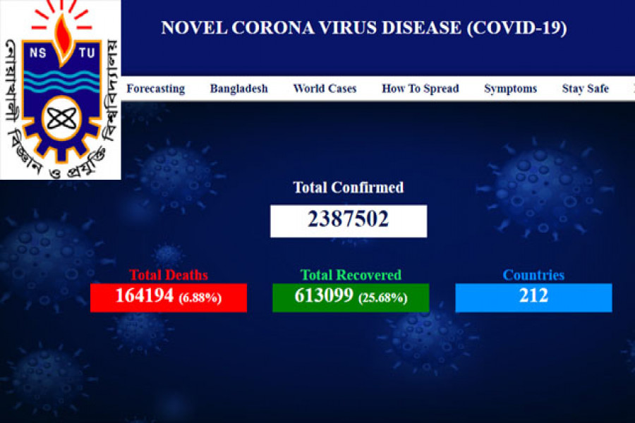 নোয়াখালী বিজ্ঞান ও প্রযুক্তি বিশ্ববিদ্যালয়ে (নোবিপ্রবি) করোনাভাইরাস (কোভিড-১৯) এর তথ্য সম্বলিত কৃত্রিম বুদ্ধিভিত্তিক ওয়েবসাইট উদ্বোধন করা হয়েছে। আজ রবিবার বিশ্ববিদ্যালয়ের উপাচার্য অধ্যাপক ড. মোঃ দিদার-উল-আলম অনলাইনে এটির উদ্বোধন করেন। এসময় অনলাইনে সংযুক্ত ছিলেন নোবিপ্রবি সিএসটিই বিভাগের সহকারী অধ্যাপক কৌশিক চন্দ্র হাওলাদার এবং এমআইএস বিভাগের প্রভাষক জনাব শাহরিয়ার সেতু।