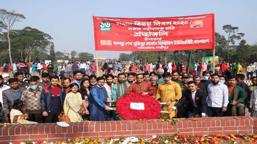 মহান বিজয় দিবসে আজ বুধবার (১৬ ডিসেম্বর) ধানমণ্ডির ৩২ নম্বরে সর্বকালের সর্বশ্রেষ্ঠ বাঙালি জাতির পিতা বঙ্গবন্ধু শেখ মুজিবুর রহমান-এর প্রতিকৃতি ও সাভার জাতীয় স্মৃতিসৌধে পুষ্পস্তবক অর্পণের মাধ্যমে মহান স্বাধীনতা যুদ্ধের শহীদরে প্রতি শ্রদ্ধা জানিয়েছেন বঙ্গবন্ধু শেখ মুজিবুর রহমান ডিজিটাল ইউনিভার্সিটি, বাংলাদেশ (বিডিইউ) এর উপাচার্য অধ্যাপক ড. মুনাজ আহমেদ নূর।