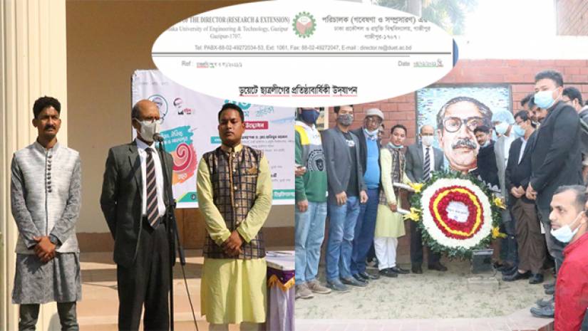 ওই দপ্তরের অফিসিয়াল প্যাড এবং ডুয়েট পাবলিকেশন কাম ইনফরমেশন অফিসার মো. জিয়াউল হক স্বাক্ষরিত প্রেস বিজ্ঞপ্তিতে বলা হয়, ‘ঢাকা প্রকৌশল ও প্রযুক্তি বিশ্ববিদ্যালয় (ডুয়েট), গাজীপুর-এ ডুয়েট ছাত্রলীগের উদ্যোগে বাংলাদেশ ছাত্রলীগের ৭৩তম প্রতিষ্ঠাবার্ষিকী বিশ্ববিদ্যালয় প্রাঙ্গণে অনুষ্ঠিত হয়েছে। আজ সকালে উদ্বোধনী অনুষ্ঠানে প্রধান অতিথির বক্তৃতায় উপাচার্য অধ্যাপক ড. এম. হাবিবুর রহমান বলেন, সর্বকালের সর্বশ্রেষ্ঠ বাঙালি জাতির পিতা বঙ্গবন্ধু শেখ মুজিবুর রহমান সারাজীবন মেহনতি মানুষের জন্য চিন্তা ও সংগ্রাম করে গেছেন। ছাত্রলীগের প্রত্যেক কর্মীদের উদ্দেশ্য হলো তার আদর্শ ধারণ করা। প্রত্যেক কর্মীকে বঙ্গবন্ধুর আদর্শ ধারণ করে নিজ যোগ্যতায় অবস্থান তৈরি করতে হবে। তিনি দেশরত্ন শেখ হাসিনার নেতৃত্বে উন্নয়নের এই ধারা অব্যহত রাখতে সকলকে ঐক্যবদ্ধভাবে কাজ করে যাওয়ার আহবান জানান।’