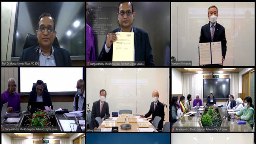সোমবার (১১ জানুয়ারি) দুপুরে জুমপ্ল্যাটফর্মে এই সমঝোতা স্মারক স্বাক্ষর অনুষ্ঠান অনুষ্ঠিত হয়। বঙ্গবন্ধু শেখ মুজিবুর রহমান ডিজিটাল ইউনিভার্সিটি, বাংলাদেশ এর পক্ষে সমঝোতা স্মারকে স্বাক্ষর করেন বিশ্ববিদ্যালয়ের উপাচার্য অধ্যাপক ড. মুনাজ আহমেদ নূর এবং হ্যানইয়াং বিশ্ববিদ্যালয়ের পক্ষে স্বাক্ষর করেন বিশ্ববিদ্যালয়ের প্রেসিডেন্ট ড. উ সিয়ং কিম।