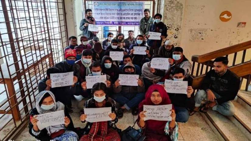 আজ সোমবার (২৫ জানুয়ারী) বিশ্ববিদ্যালয়ের একাডেমিক ভবনের ৪র্থ তলায় নিজ বিভাগের সামনে এ অবস্থান কর্মসূচি পালন করেন তারা।