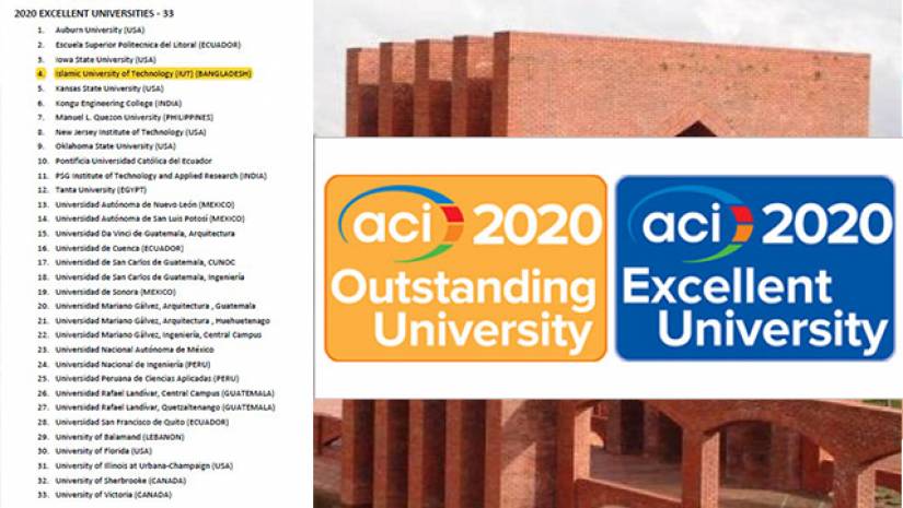 আমেরিকান কংক্রিট ইনস্টিটিউট (এসিআই) প্রদত্ত এক্সিলেন্ট এসিআই-২০২০ ইউনিভার্সিটি অ্যাওয়ার্ডের জন্য বাংলাদেশ থেকে মনোনীত হয়েছে গাজীপুরের ইসলামিক ইউনিভার্সিটি অব টেকনোলজি (আইইউটি)। এই প্রথম কোনো বাংলাদেশি বিশ্ববিদ্যালয় এসিআই স্টুডেন্ট চ্যাপ্টার এক্সিলেন্ট ইউনিভার্সিটি অ্যাওয়ার্ড অর্জন করলো।