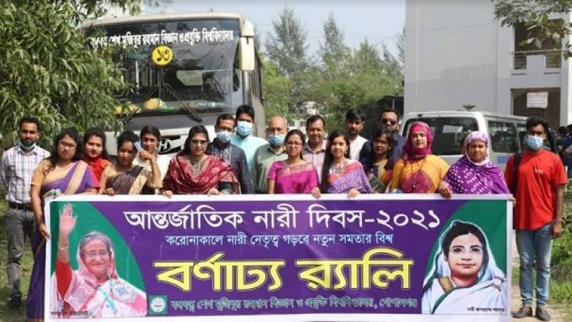 গোপালগঞ্জের বঙ্গবন্ধু শেখ মুজিবুর রহমান বিজ্ঞান ও প্রযুক্তি বিশ্ববিদ্যালয়ে (বশেমুরবিপ্রবি) আন্তর্জাতিক নারী দিবস পালিত হয়েছে। এ উপলক্ষে সোমবার (৮ মার্চ) দুপুরে শোভাযাত্রা ও আলোচনা সভার আয়োজন করা হয়।