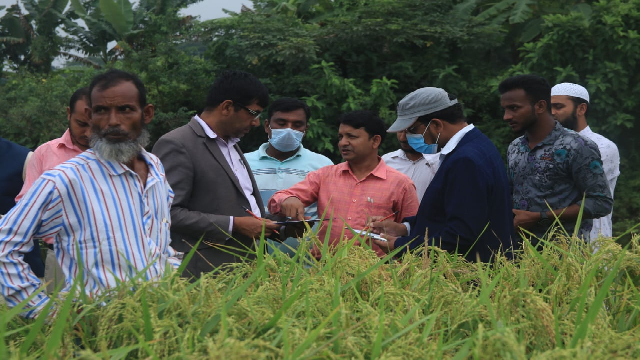 ‘ক্রপ ক্যাফেটেরিয়া’ কার্যক্রম পর্যবেক্ষণ করছেন গবেষক ও কৃষকরা © টিডিসি ফটো