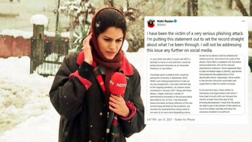 ২০ বছরের সাংবাদিকতা জীবন নিধি রাজদানের। সর্বশেষ ভারতের এনডিটিভিতে ছিলেন। সেই চাকরি ছেড়েছিলেন আমেরিকায় পাড়ি দেওয়ার জন্য। হার্ভার্ড বিশ্ববিদ্যালয়ে শিক্ষকতা করার কথা ছিল তার। কিন্তু অনলাইন প্রতারকের খপ্পরে পড়ে শিক্ষকতা করা হলো না রাজদানের। আসলে অনলাইন ফিশিং স্ক্যামের খপ্পরে পড়েছিলেন তিনি।