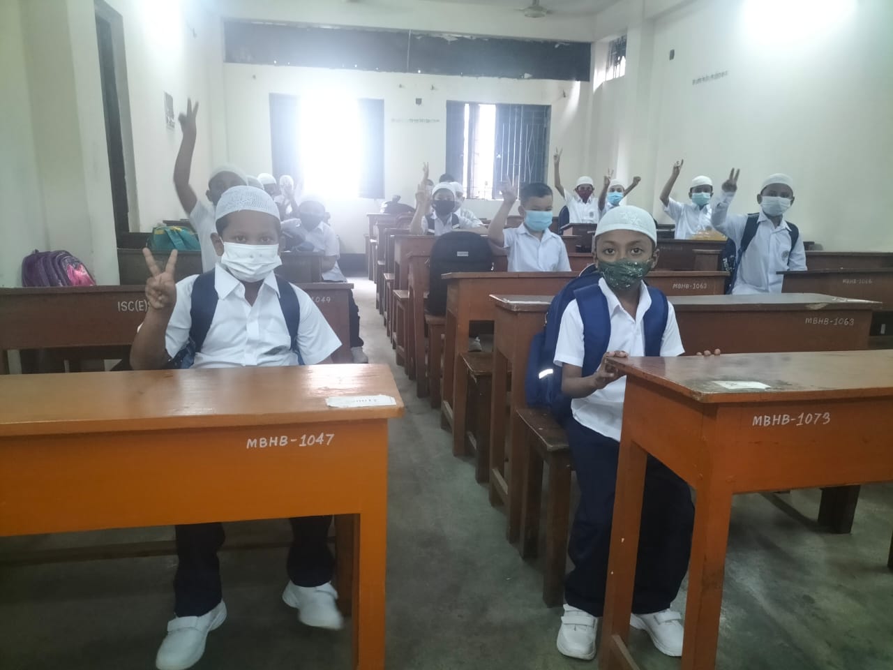 ক্লাসে প্রবেশের পর শিক্ষার্থীদের উচ্ছ্বাস বেড়ে যায় কয়েকগুন। ক্লাস শুরুর পূর্বে মাধ্যমিক ও উচ্চশিক্ষা অধিদপ্তরের নির্দেশনা অনুযায়ী ১০ মিনিট করোনা বিষয়ক শতর্কতা নিয়ে আলোচনা করেন শিক্ষকরা। এ সময় ক্ষুদে শিক্ষার্থীদের সকলের মুখেই মাস্ক দেখা গেছে।