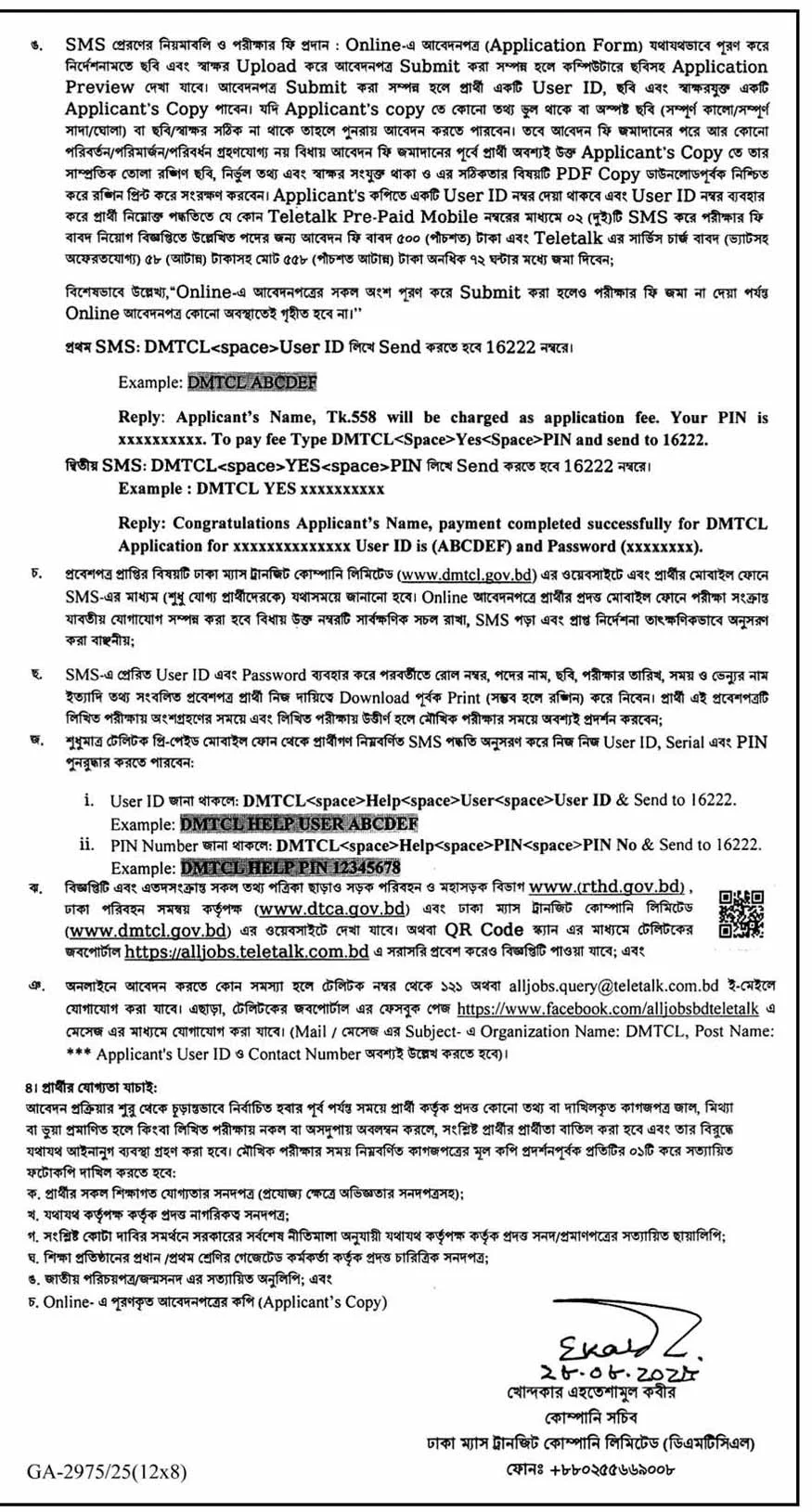 সূত্র: ডিএমটিসিএলের বিজ্ঞপ্তি