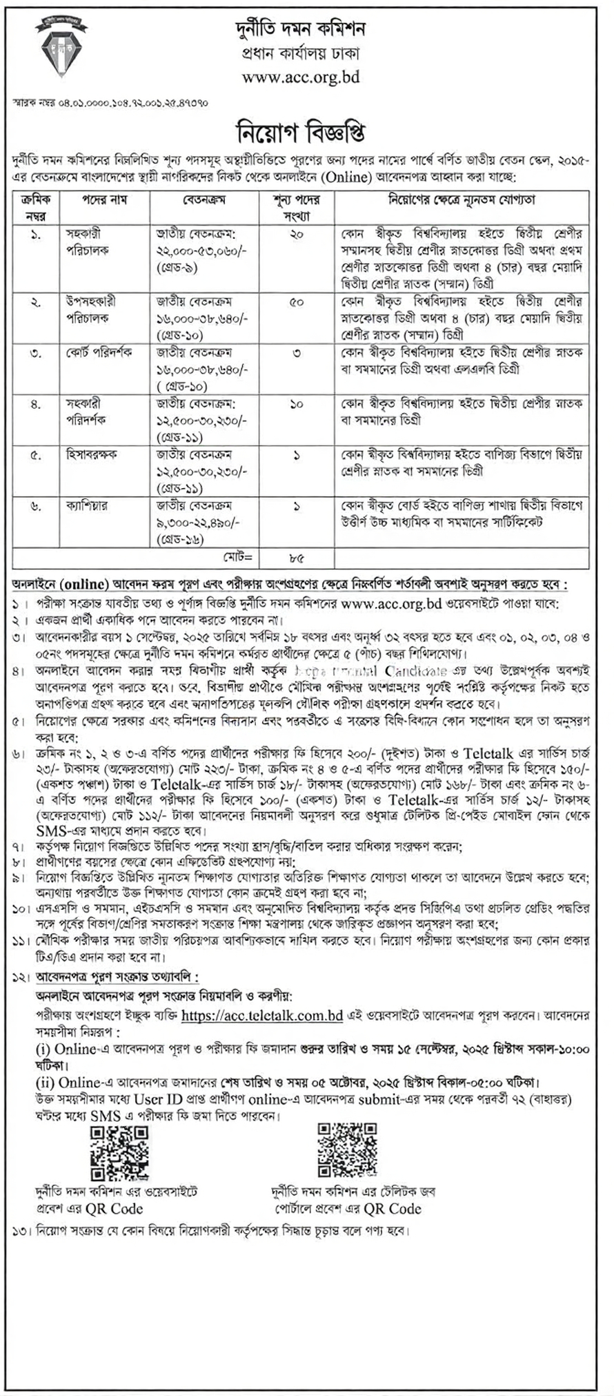 দুর্নীতি দমন কমিশনে বড় নিয়োগ, পদ ৮৫, আবেদন শেষ আগামীকাল