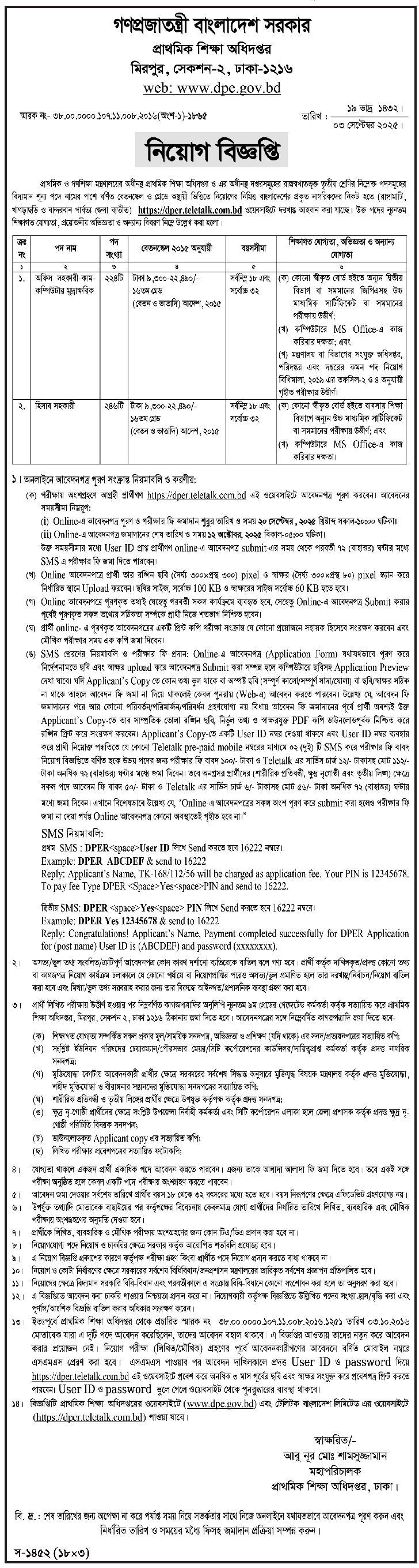 প্রাথমিক শিক্ষা অধিদপ্তরে বড় নিয়োগ, পদ ৪৭০, আবেদন শেষ ১২ অক্টোবর