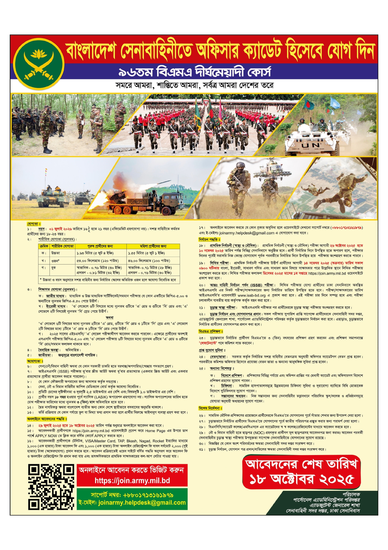 বাংলাদেশ সেনাবাহিনী নিয়োগ দেবে অফিসার ক্যাডেট, আবেদন শেষ ১৮ অক্টোবর