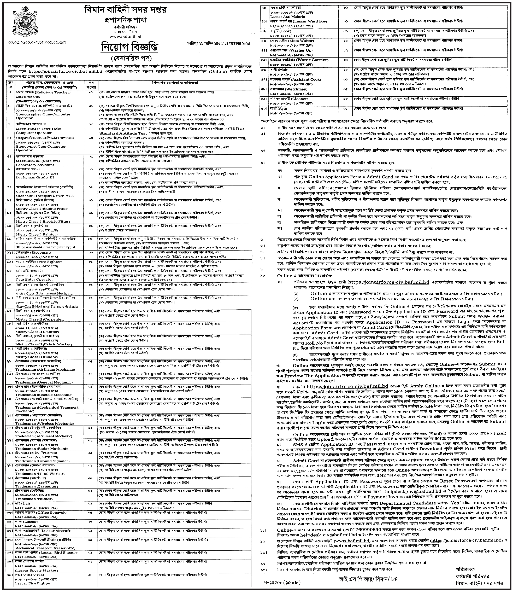 বিমান বাহিনীতে বেসামরিক পদে বড় নিয়োগ বিজ্ঞপ্তি, পদ ৩০৮, আবেদন অনলাইনে