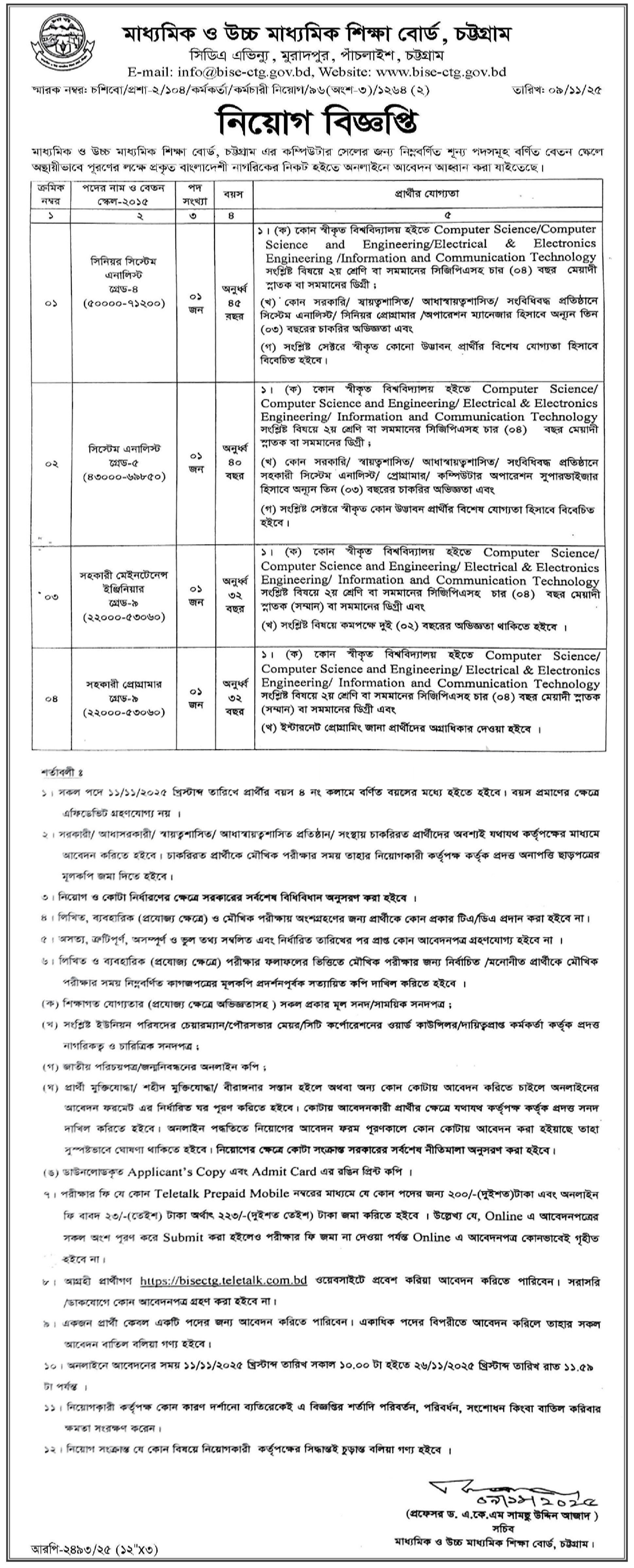 কর্মকর্তা নিয়োগ দেবে চট্টগ্রাম শিক্ষা বোর্ড, আবেদন শুরু ১১ নভেম্বর