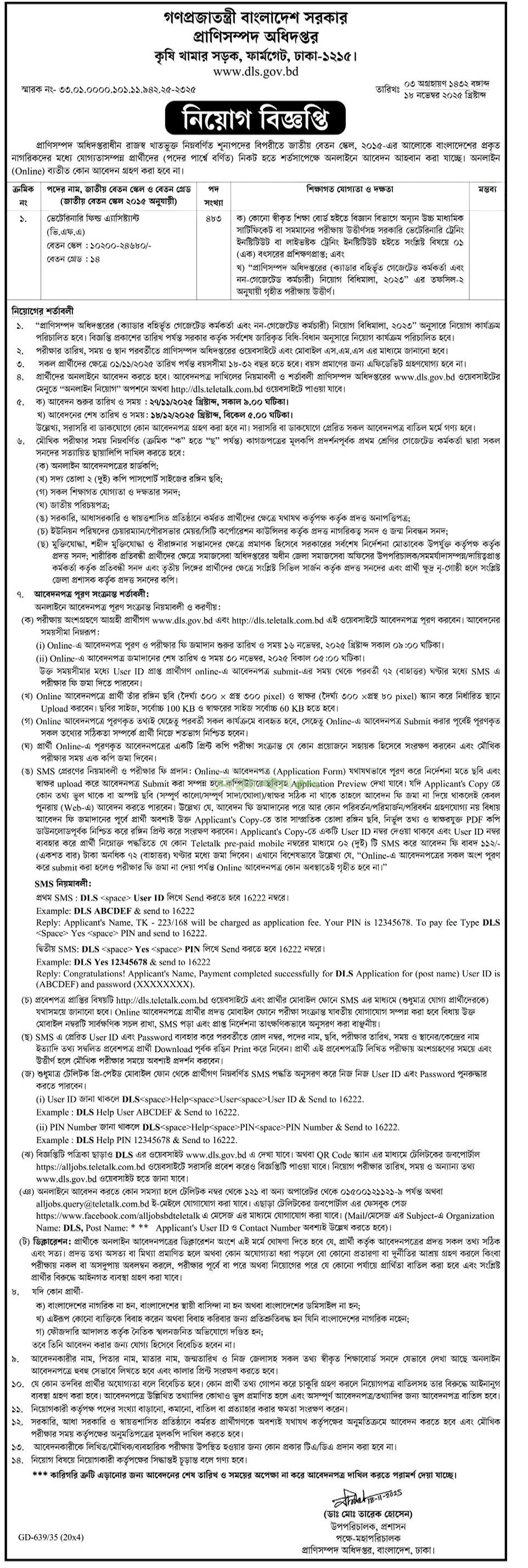 বড় নিয়োগ বিজ্ঞপ্তি প্রাণিসম্পদ অধিদপ্তরে, পদ ৪৮৩, আবেদন এইচএসসি পাসেই