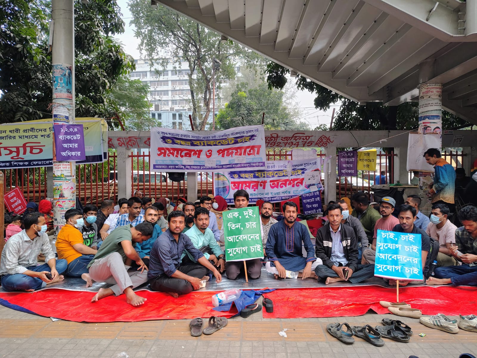 ব্যাকডেটের দাবিতে আন্দোলনরত চাকরিপ্রার্থীরা