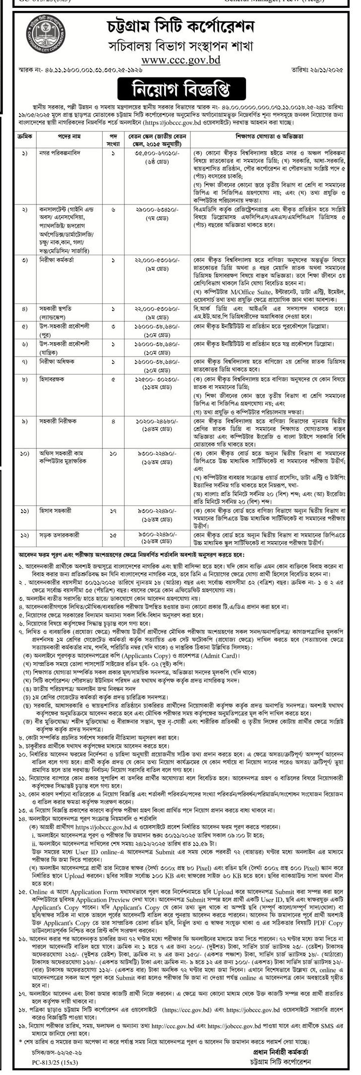 চট্টগ্রাম সিটি করপোরেশনে বিভিন্ন গ্রেডে চাকরি, পদ ৬৫, আবেদন শেষ আগামীকাল রাত ১২টায়