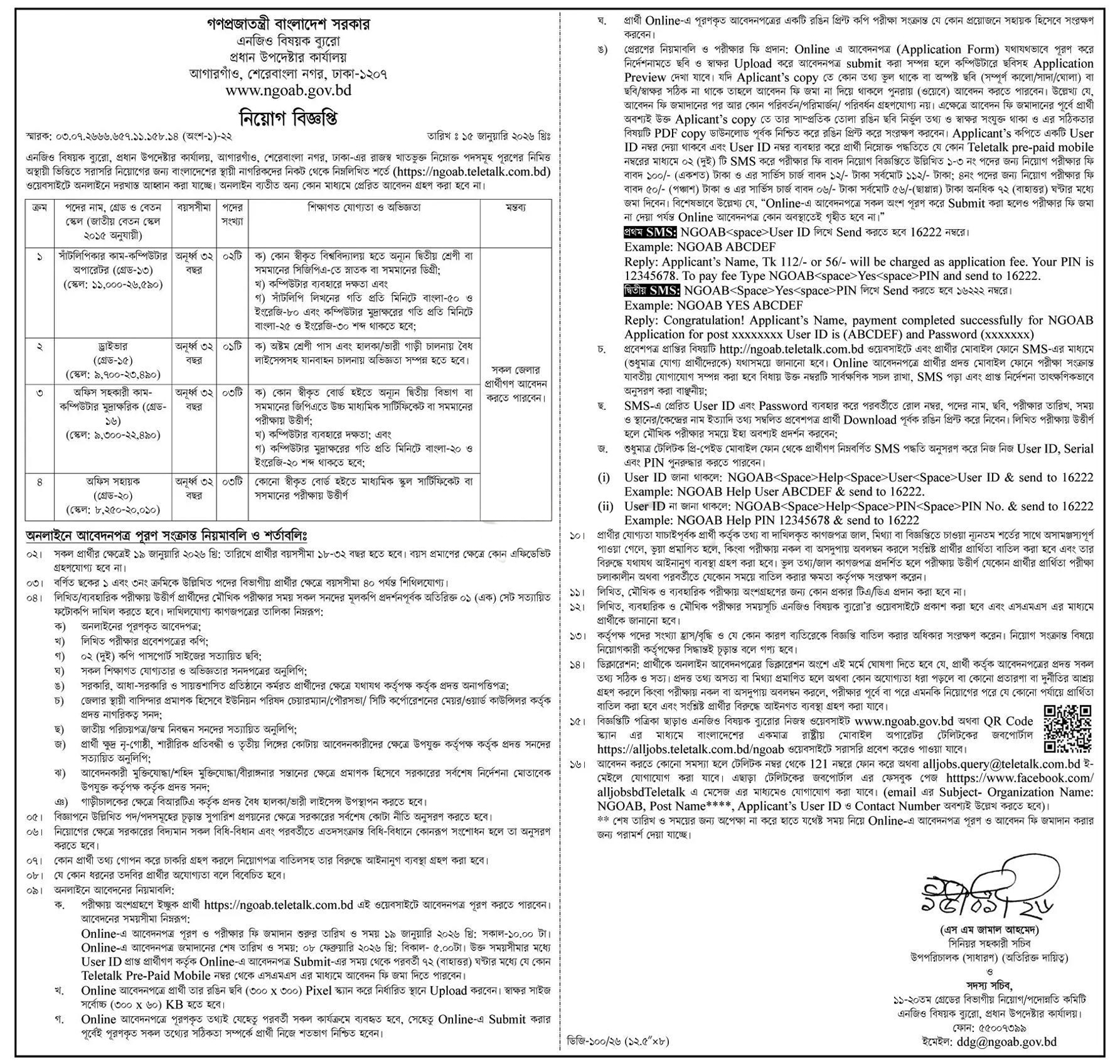 বেতন স্কেল: ৮,২৫০-২০,০১০ টাকা (গ্রেড-২০);