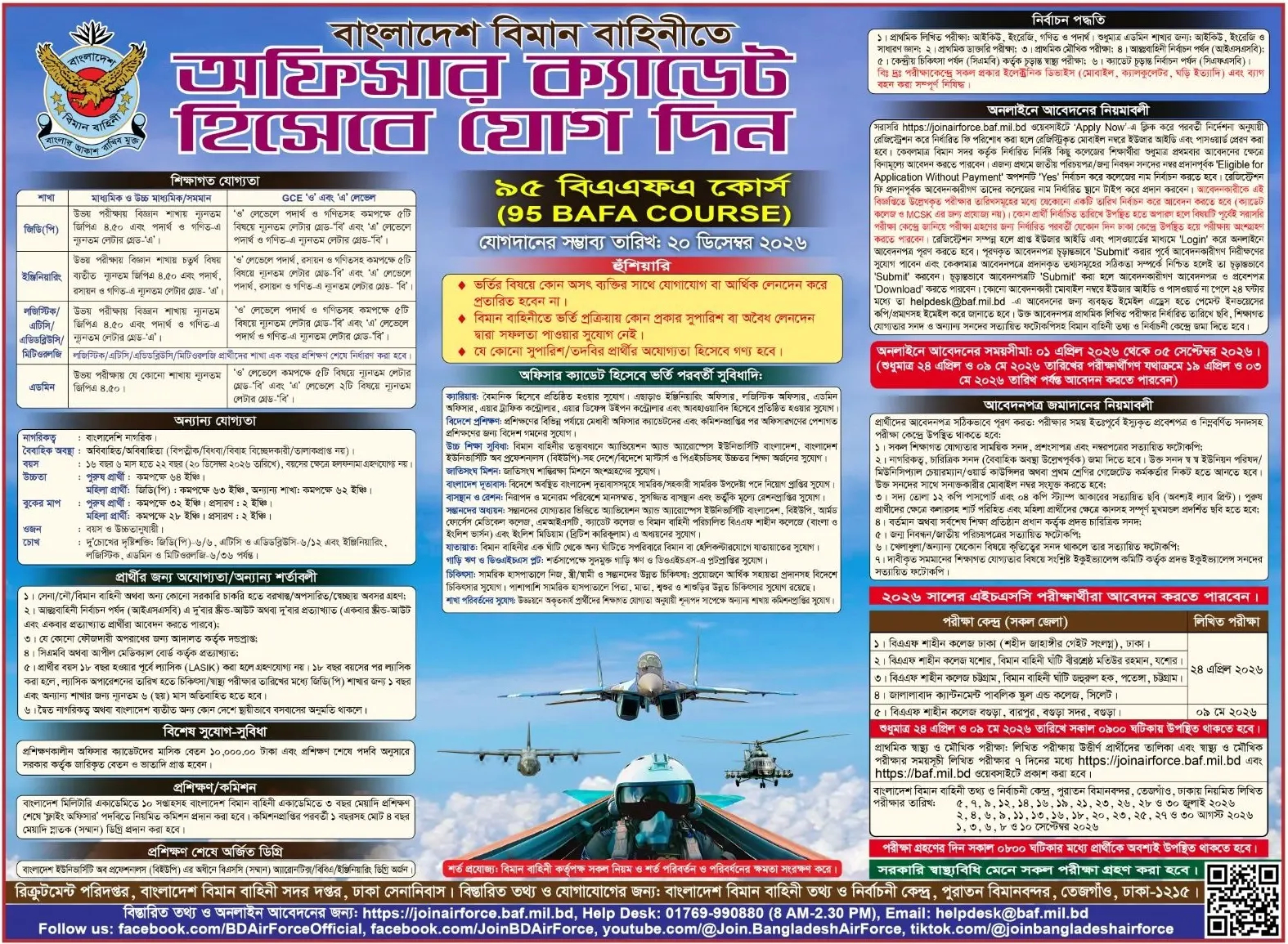 জনবল নিয়োগে বিজ্ঞপ্তি প্রকাশ করেছে বাংলাদেশ বিমান বাহিনী। প্রতিষ্ঠানটি ৯৫তম বিএএফএ কোর্সে ‘অফিসার ক্যাডেট’ নিয়োগে প্রকাশ করেছে এ বিজ্ঞপ্তি। আগ্রহী প্রার্থীরা আগামী ৫ সেপ্টেম্বরের মধ্যে অনলাইনে আবেদন করতে পারবেন। এইচএসসি পাস প্রার্থীরা আবেদন করতে পারবেন।