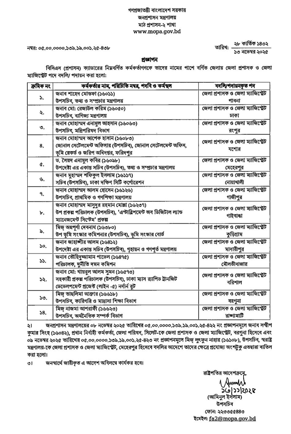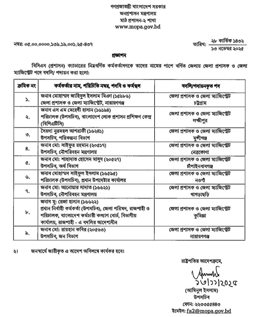 ২৩ জেলায় নতুন ডিসি, তালিকা দেখুন এখানে