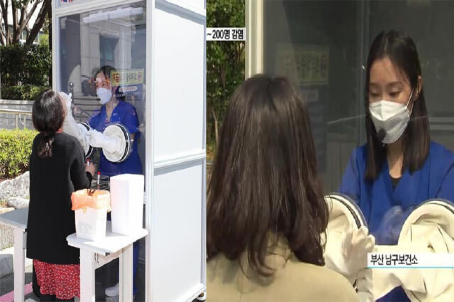করোনার চিকিৎসায় দক্ষিণ কোরিয়ায় বসানো হয়েছে টেস্টিং বুথ