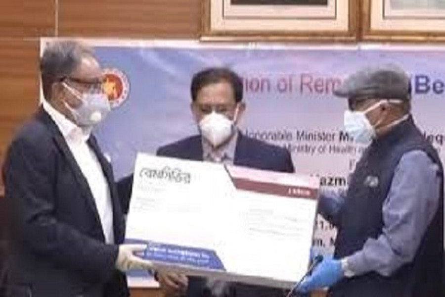 করোনার ওষুধ ‘রেমডিসিভির’ স্বাস্থ্যমন্ত্রীর কাছে হস্তান্তর